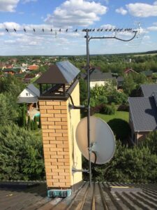 - Bezinwazyjny montaż anteny do komina (bez wiercenia) za pomocą specjalnych mocowań.